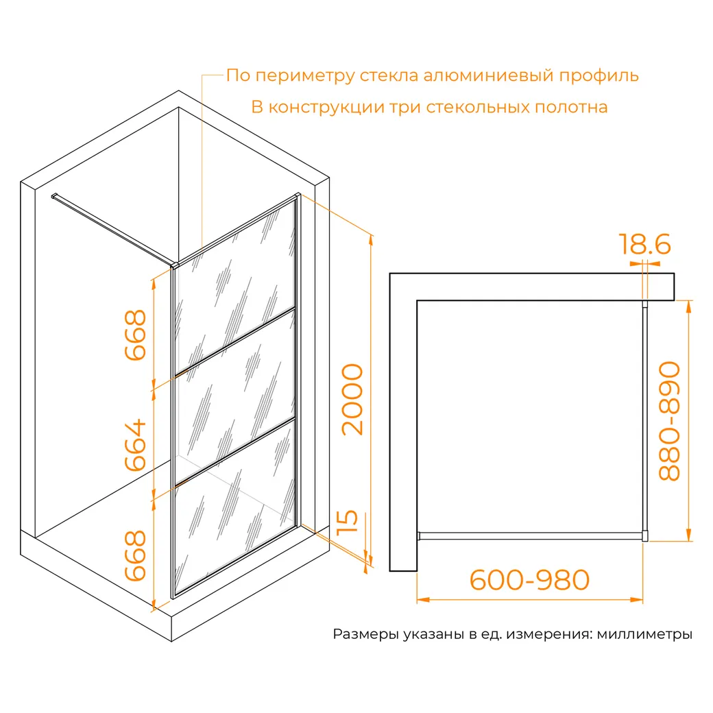 Главное преимущество данной модели — минимальная упаковка в виде чемоданчика с ручкой. Это позволяет легко и удобно транспортировать душевую перегородку! Душевая перегородка состоит из 3-х стекольных полотен (8мм), которые обрамлены изящным анодированным алюминиевым профилем! Штанга из стали S304, крепится к стене, она обеспечивает стабильность душевого ограждения. Длина стальной штанги 1000 мм, при этом ее всегда можно укоротить путем обычной подрезки. В конструктив модели возможно добавить тканевую водонепроницаемую шторку, при этом варианте использовать Штангу - кронштейна как карниз. Модели представлены в трендовых цветовых решениях профиля: