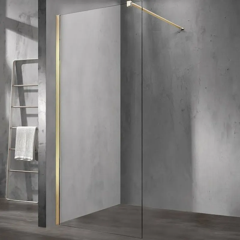 Душевая перегородка Vincea Walk-In 100 VSW-1H100CLG.Характеристики: Цвет профиля: золото матовое. Материал профиля: анодированный алюминий. Материал полотна: закаленное стекло. Исполнение стекла: прозрачное стекло толщиной 8 мм. Габариты (ШхВ): 1005х2000 мм. Регулировочные размеры: 980-1005 мм. Конструкция: неподвижная. Установка: на поддон, на пол. В комплекте поставки: Душевая перегородка.