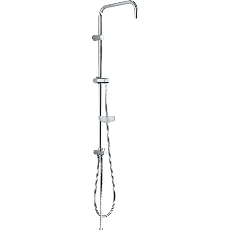 Душевая штанга Orange s-bar c держателем для ручного душа и шлангом.Характеристики:Цвет: хром.Материал душевой штанги: латунь.Душевой шланг: 150 см, пластиковый в металлической оплетке, с защитой от перекручивания.Держатель ручного душа, регулируемый по высоте и наклону.Держатель шанги с регулировкой по высоте и возможностью установки в старые отверстия.Быстросъемная пластиковая мыльница.В комплекте поставки:душевая штанга;шланг для душа;настенный держатель штанги;держатель лейки;переключатель потоков;мыльница;комплект креплений;
