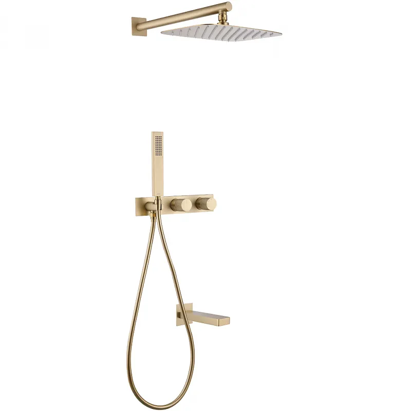 - Полная комплектация: В комплект входят смеситель, верхний и ручной душ, что упрощает установку и использование.