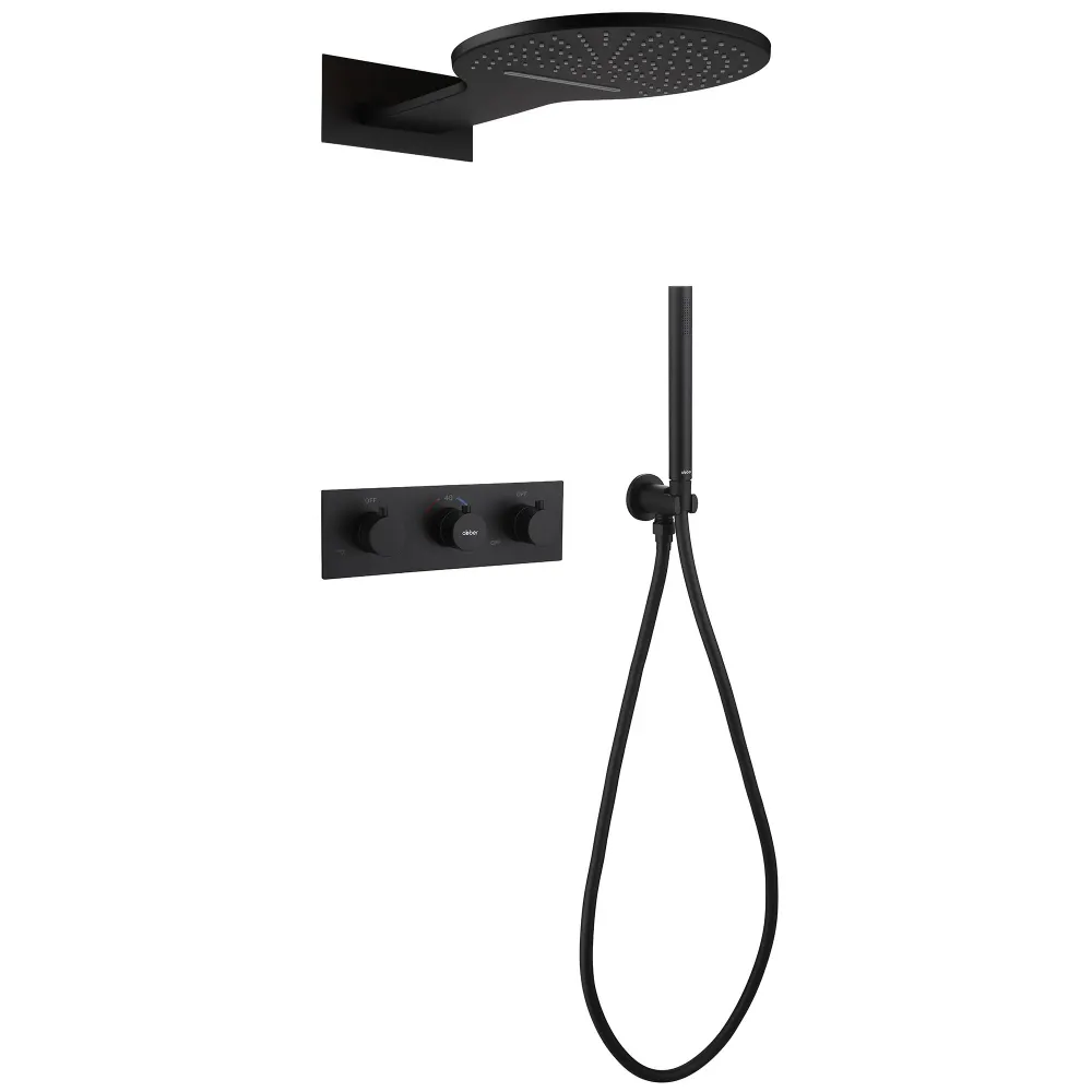 Душевая система ABBER Wasser Kreis скрытого монтажа без излива, термостат, черная матовая арт-AF8151B