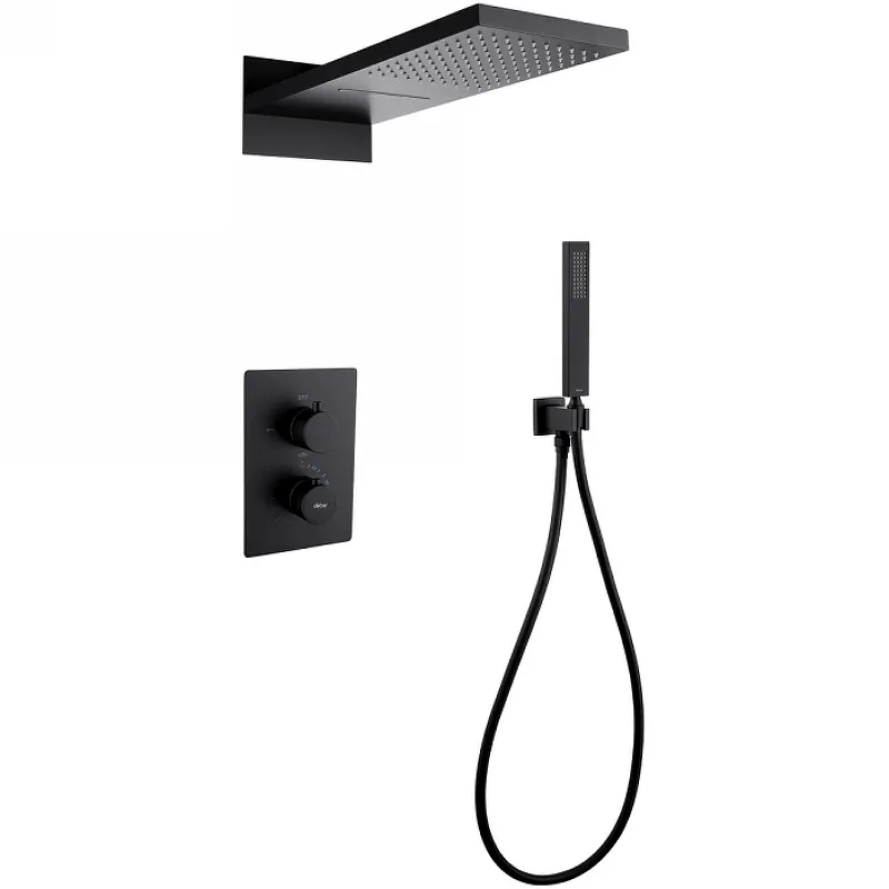 Душевая система Abber Weiss Insel AF8052B с термостатом Черная матовая