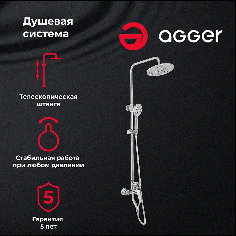Преимущества душевой системы Agger Merry A1393300 Хром