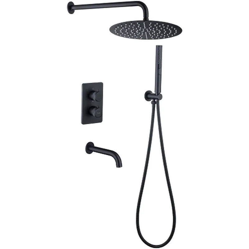 - Стильный дизайн: Черная матовая душевая система идеально вписывается в современный интерьер ванной комнаты.