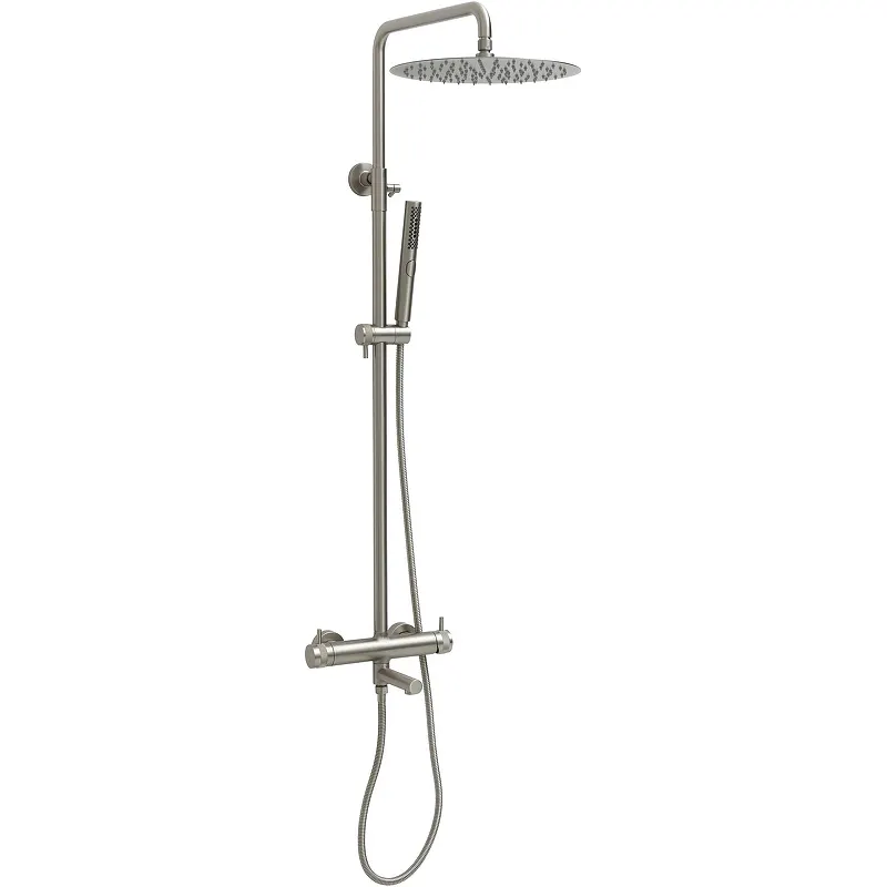 - Современный дизайн: Душевая система выполнена в современном стиле и имеет никель брашированный цвет, что идеально впишется в любой интерьер ванной комнаты.