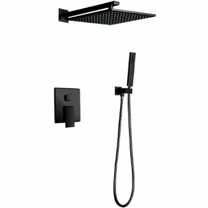 - Современный дизайн: Черный матовый цвет и квадратная форма верхнего душа 25х25 см добавят стильный акцент в любой интерьер ванной.