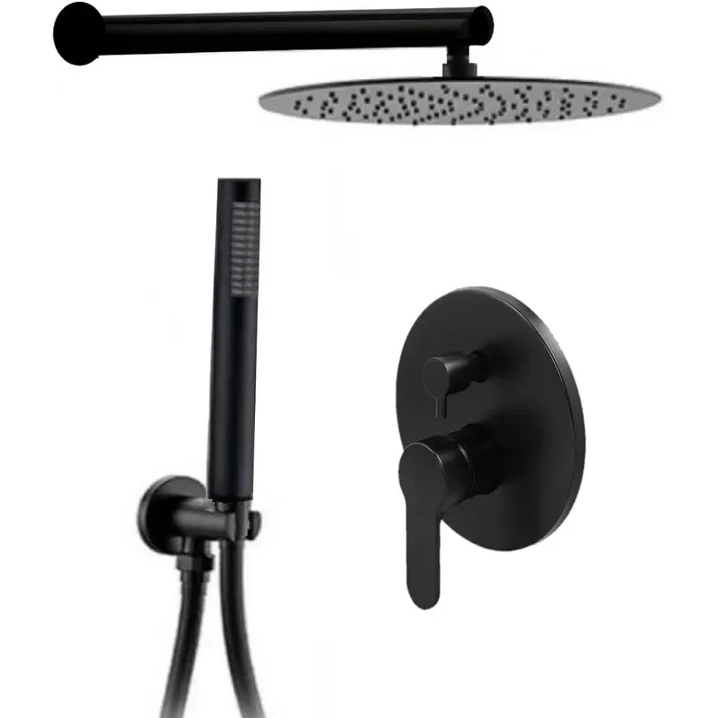 - Стильный дизайн для душевых систем: Черная матовая поверхность гармонично вписывается в современный стиль.