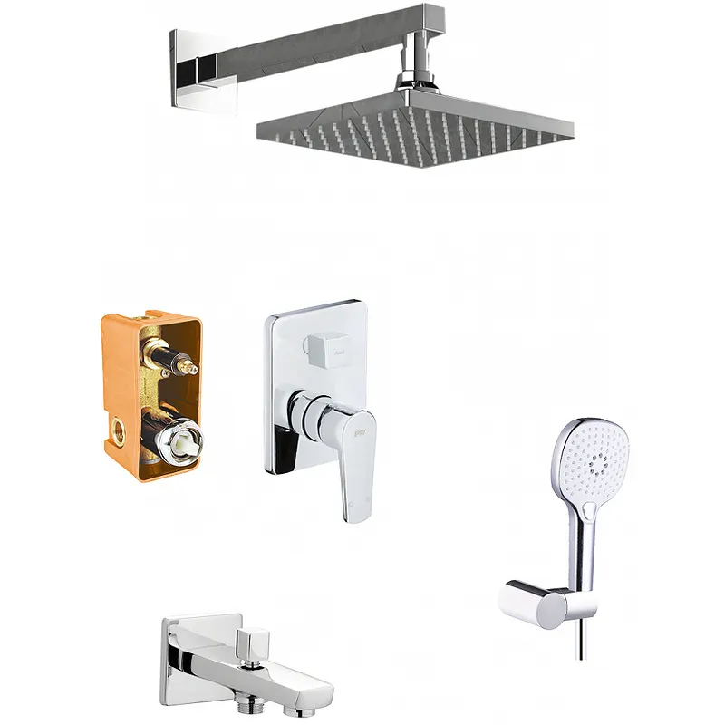 - Эстетичность и функциональность: Прямоугольный верхний душ и круглая лейка ручного душа придают элегантность и комфорт.