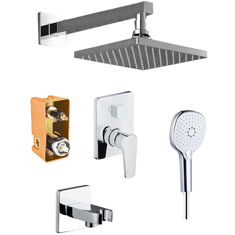 - Полный комплект: Включает ручной и верхний душ, а также смеситель, что облегчает установку и использование.
