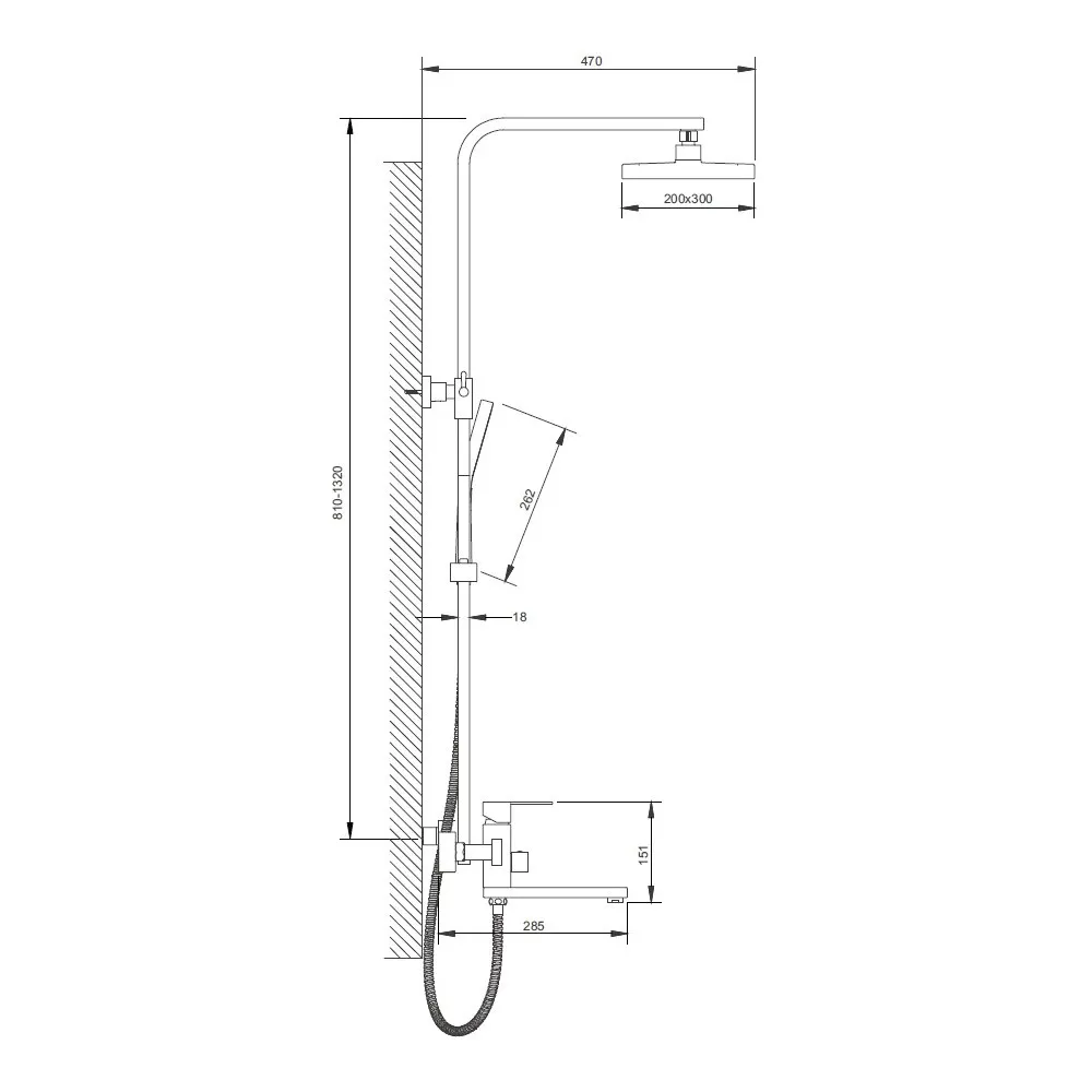 Поворотный излив душевой системы оснащён аэратором, благодаря чему поток воды становится мягче и равномернее. Верхний душ размером 300х200 мм изготовлен из качественного ABS-пластика и оснащён силиконовыми форсунками, которые легко очищаются от известкового налёта. Благодаря шарниру верхний душ можно регулировать по наклону вдоль всей оси, а его высота настраивается с помощью телескопической конструкции штанги.