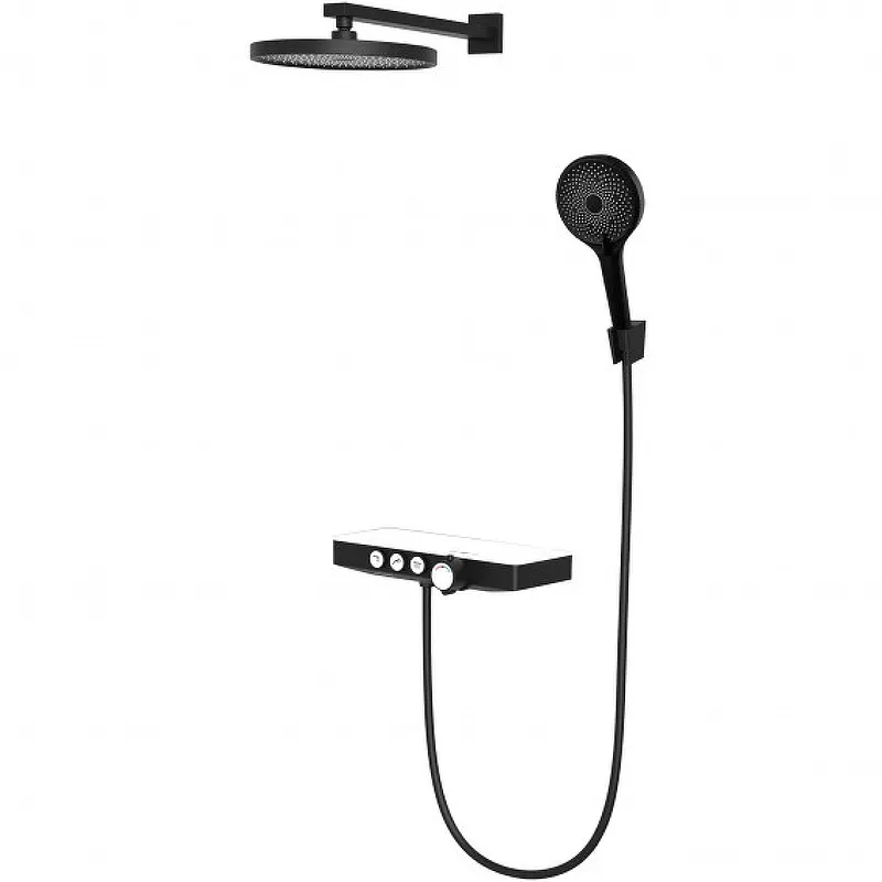 - Эстетичность: Черный матовый цвет и круглая форма верхнего душа подчеркивают современный стиль в интерьере.
