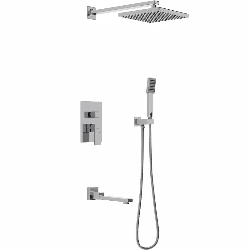 - Стильный современный дизайн: Прямоугольная форма верхнего и ручного душа гармонично интегрируется в современный стиль ванной комнаты.