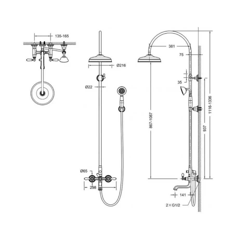 Душевая система Bravat Art F65193BAF-A2-RUS, золото. Материал: латунь. Монтаж: настенный. Управление: вентильное.