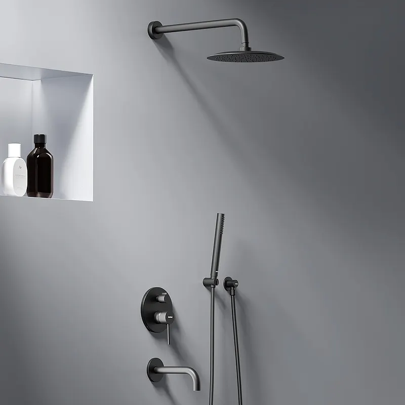 - Элегантный дизайн: Матовая черная поверхность не только стильна, но и устойчива к загрязнениям, что делает данную душевую систему идеальной для интерьера в современном стиле.