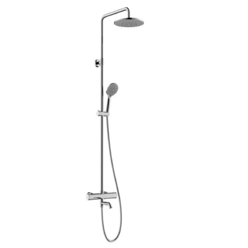 - Душевая система с термостатом обеспечивает комфортную температуру воды, избегая резких перепадов.