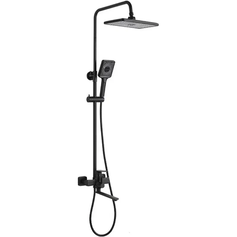 - Современный стиль: Черная матовая душевая система добавит элегантности в вашу ванную комнату.