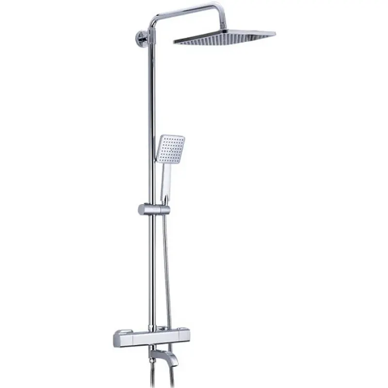 - С термостатом: Душевая система оснащена термостатическим картриджем, который стабильно поддерживает заданную температуру воды.