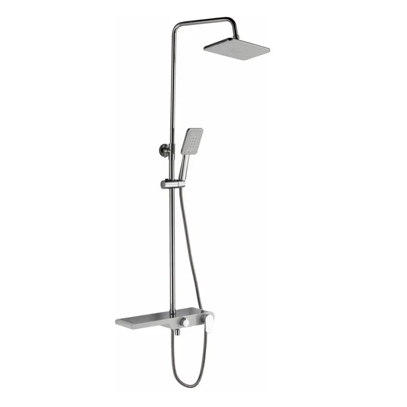 Душевая система Haiba. Изготовлена из высококачественной латуни. Прекрасный тропический душ. Излив для наполнения ванны. Оснащается полкой для гигиенический средств. Душевая штанга регулируется по высоте от 93,7 см до 153,7 см. Переключение потоков осуществляется путем вращения девиатора на корпусе смесителя.