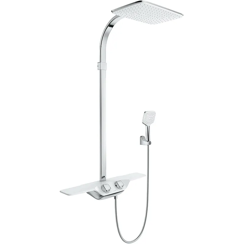 Душевая система Kludi Cockpit Discovery 8020091-00 предоставляет идеальное сочетание функциональности и дизайна. Данная душевая система с термостатом и полочкой выполнена в стильных хром и белом цветах, что делает её отличным выбором для ванных комнат в современном стиле. Материалы, такие как латунь и пластик, гарантируют долговечность и надежность.