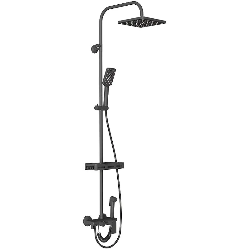 - Эстетичный дизайн: Черное матовое покрытие и прямоугольная форма душевой системы подчеркивают современный стиль вашей ванной комнаты.