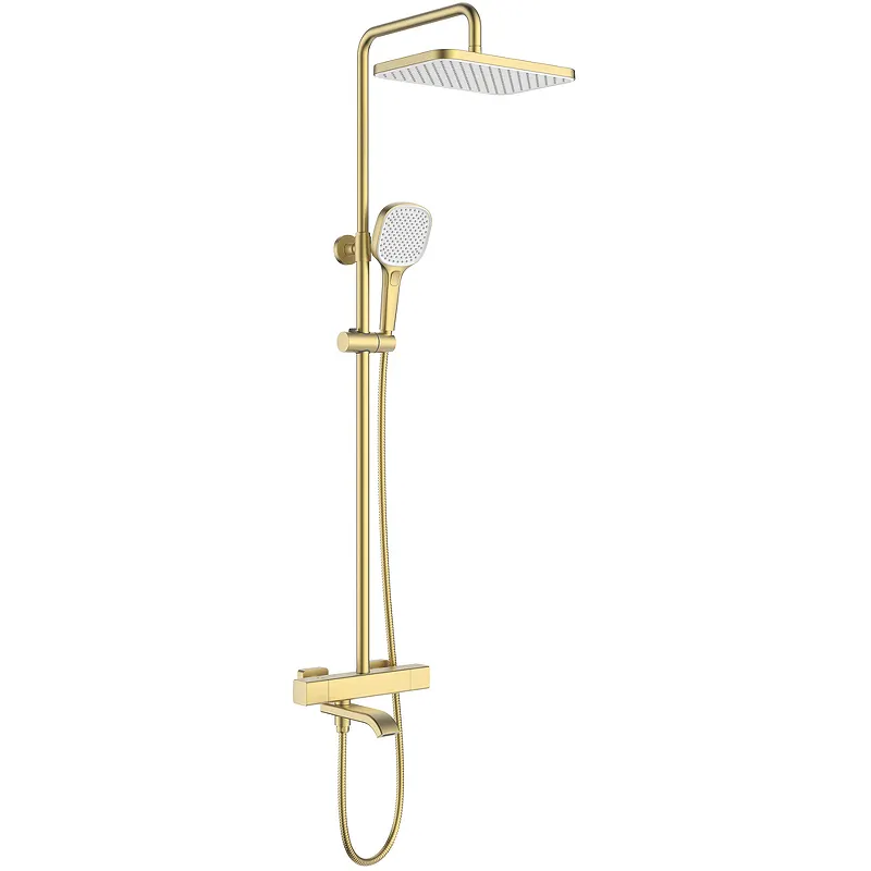 - Элегантный дизайн: Душевая система в современном стиле с матовой золотой отделкой станет ярким акцентом в интерьере любой ванной комнаты.