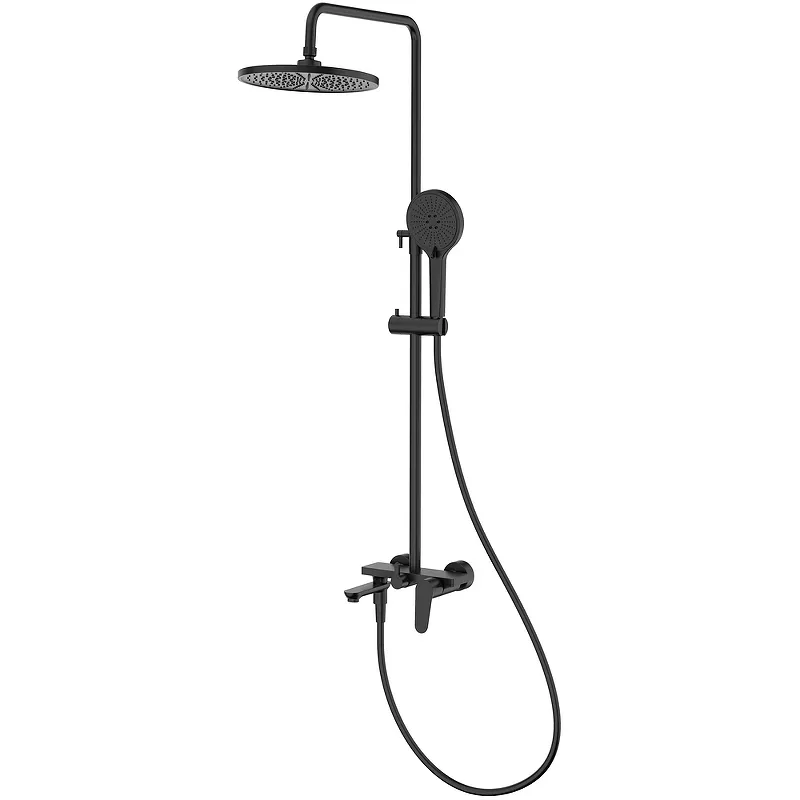 Душевая система Raglo R31.24.06 Черная матовая — идеальный выбор для современных ванных комнат. Изготовленная из высококачественной латуни, она обеспечивает долговечность и надежность. Черный матовый цвет придаёт элегантный вид, который подчеркнёт стильный интерьер. Система оснащена однорычажным управлением и керамическим картриджем, что гарантирует плавность регулировки температуры и напора воды.