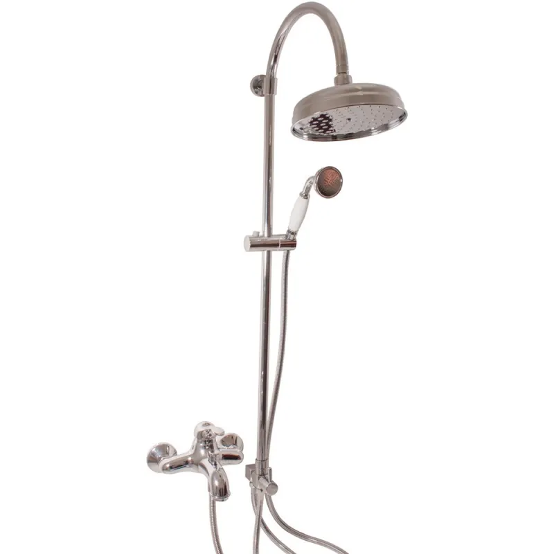 Душевая система Rav Slezak Labe L054.5/3 – идеальный выбор для ценителей классического интерьера. Эта душевая система выполнена в стиле ретро и прекрасно вписывается в любой интерьер ванной комнаты. Система снабжена однорычажным смесителем, который обеспечивает простое управление потоком воды. Материал гарнитура – прочная латунь с хромированным покрытием, что гарантирует долговечность и устойчивость к коррозии.