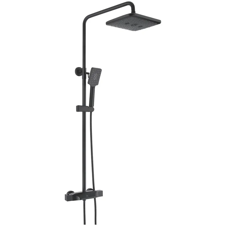 Душевая система с термостатом Rose R3736H, черный. Монтаж: настенный. Стилистика дизайна: современный стиль. Управление: термостат. Размер верхнего душа: 30x20. Форма верхнего душа: прямоугольная.