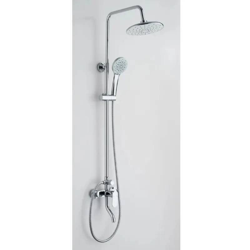 Душевая система Сантаком. Производство: Россия. Изготовлена из высококачественной латуни. Прекрасный тропический душ. Излив для наполнения ванны. Душевая штанга регулируется по высоте от 80 см до 110 см.