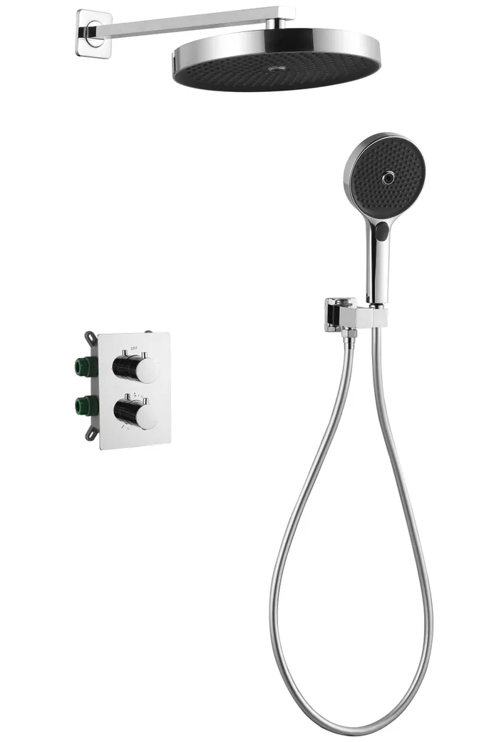 Душевая система скрытого монтажа ESKO — это идеальное решение для ванной комнаты, обеспечивающее комфорт и стиль. Данный комплект включает термостатический смеситель, верхний и ручной душ, что делает его отличным выбором для создания современного интерьера. Благодаря качественным материалам и продуманной конструкции, душевая система обеспечивает надежность и долговечность.