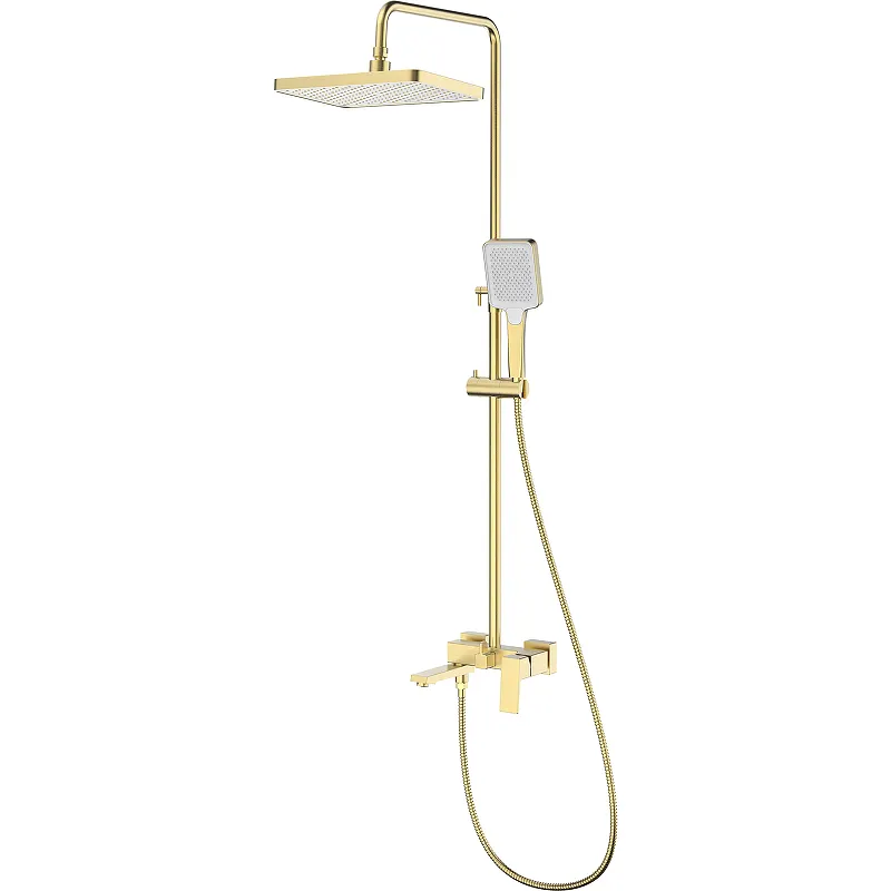 - Элегантный дизайн в современном стиле: Душевые системы с цветом золото матовое станут акцентом в вашей ванной комнате.