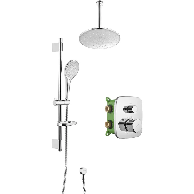 - Термостатический контроль: Душевые системы с термостатом обеспечивают стабильную температуру воды, предотвращая перепады.