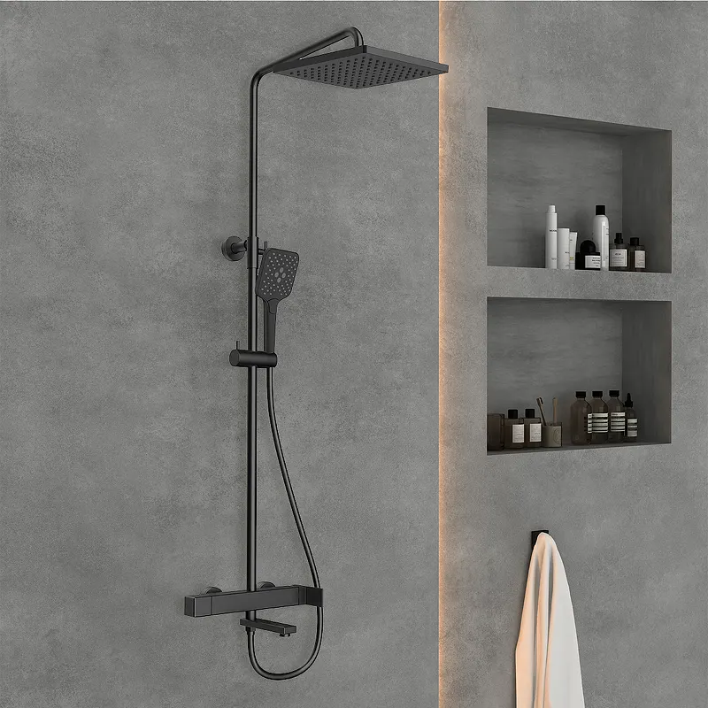 - Современный дизайн: Душевая система в черном матовом цвете идеально дополнит интерьер ванной комнаты.