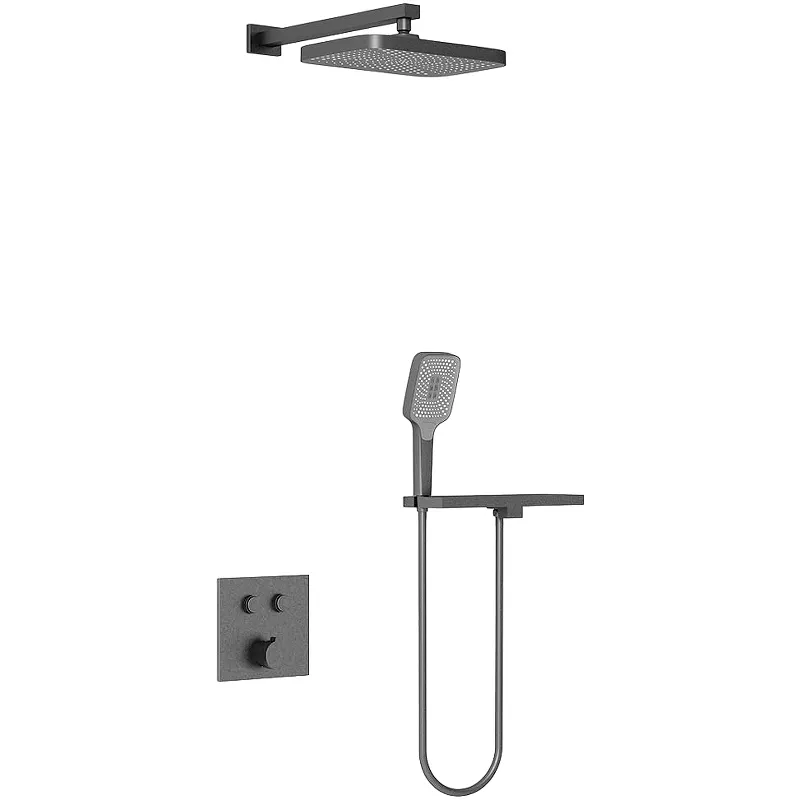 - Современный стиль: Вороненая сталь и прямоугольная форма душа идеально вписываются в современные дизайнерские решения.