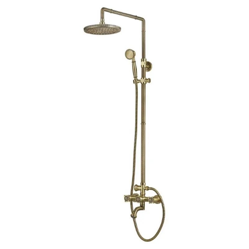 Душевая система ZorG Antic A 2002DS-BR Бронза — это идеальный выбор для тех, кто ищет надежные и стильные душевые системы в стиле ретро. Изготовленная из прочной латуни и выполненная в элегантном бронзовом цвете, данная модель станет настоящим украшением вашей ванной комнаты. Монтаж душевой системы осуществляется на стену, что позволяет сэкономить пространство и обеспечить удобство в использовании.