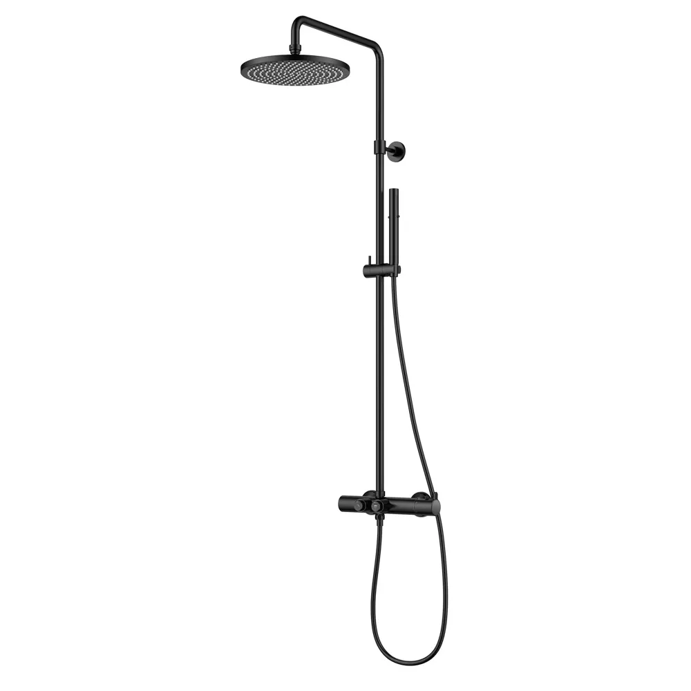 - Элегантный дизайн: Черный матовый цвет душевой стойки добавит стильный акцент в интерьер вашей ванной комнаты.