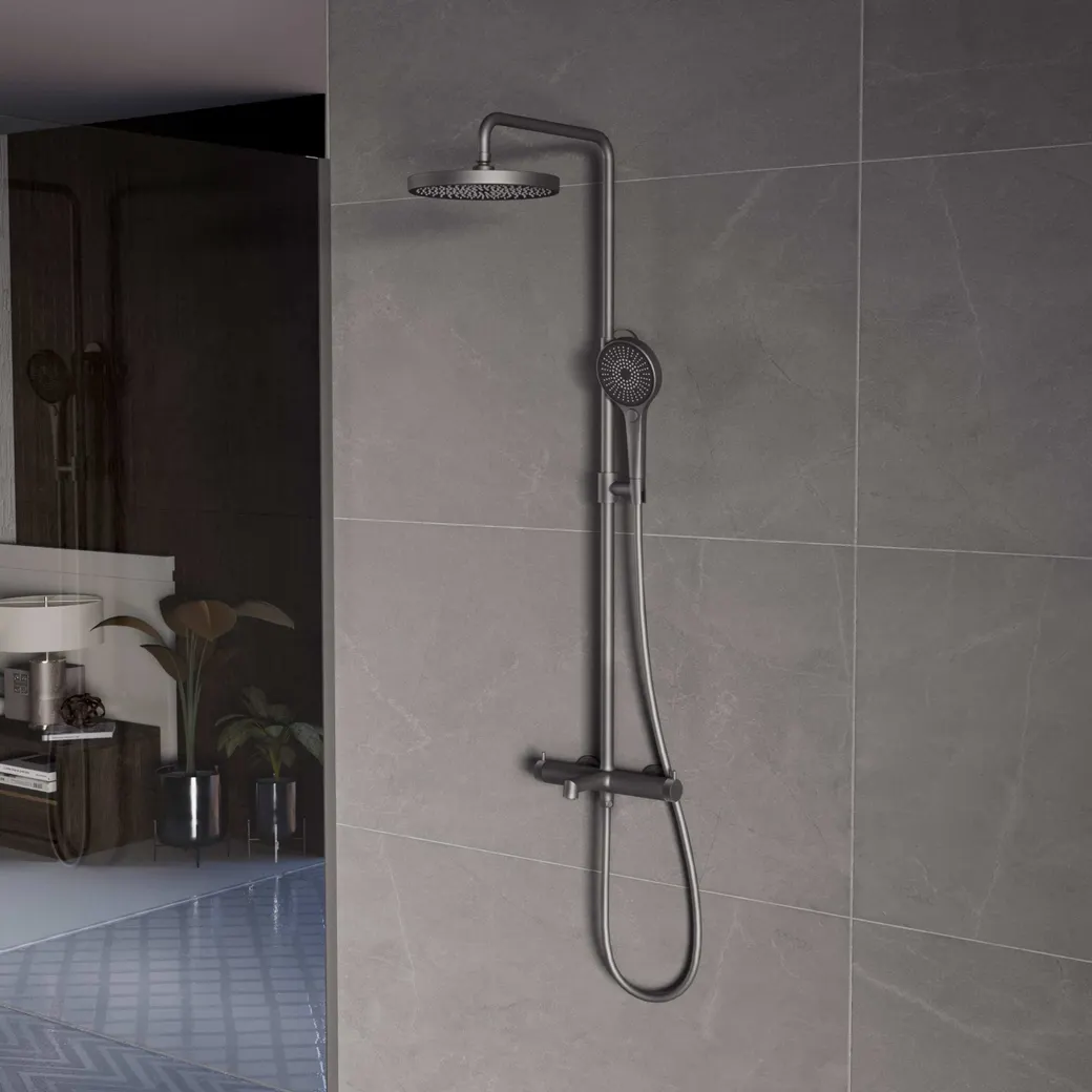 Душевая стойка Rim с изливом, вороненая сталь арт-VSFS-2RM1GM