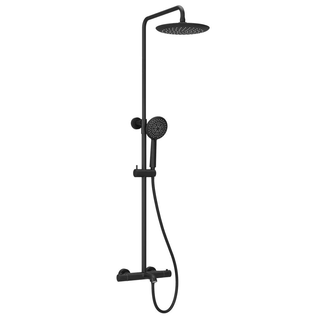 Душевая стойка с изливом и термостатом для ванны/душа Game, с регулировкой по высоте, цвет черный матовый, арт. арт-SC3001LMB
