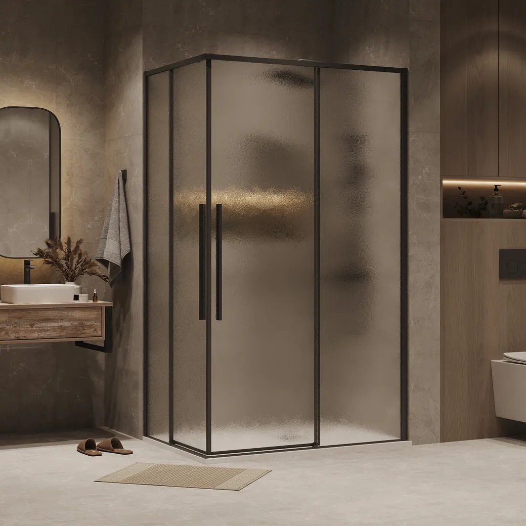 Душевое ограждение Grossman Galaxy 1/2.K33.01.12.21.02-1/2.K33.01.80L.21.02 (120х80х195) раздвижная,черный матовый,стекло шиншилла,2 места арт-300.K33.01.12R80L.21.02