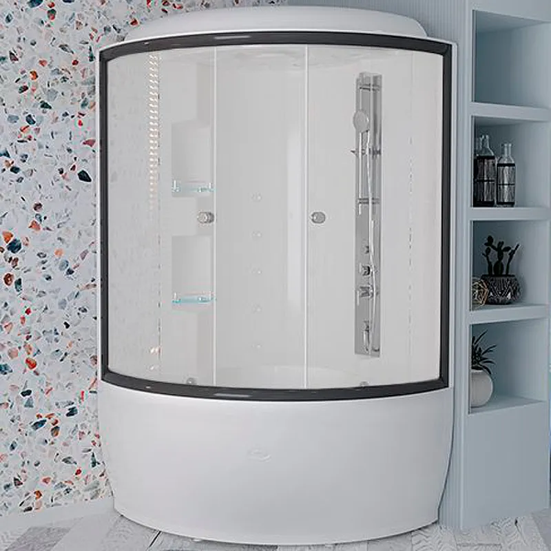 - Оснащение: Верхний душ, ручной душ, встроенное сиденье, стеклянные полочки
