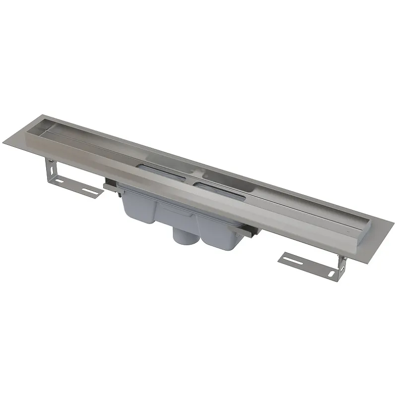 Душевой лоток Alcaplast APZ1006S-750.Характеристики: Цвет: серый. Материал лотка: нержавеющая сталь 2 мм, AISI 304, DIN 1.4301. Материал сифона: полипропилен. Для цельных решеток – нержавеющая сталь, закаленное стекло, сочетание нержавеющей стали и закаленного стекла, а также для решетки под кладку плитки и призматической решетки. Направление выпуска: вертикальный. Сток воды: 60-68.8 л/мин. Сточная труба: 50 мм. Гидрозатвор: 50 мм. Класс нагрузки: КЗ 300 кг. Общая высота монтажа: 100-168 мм. Высота монтажа от 95 мм. Регулируемый по высоте. Сопротивление гидрозатвора против давления 590 Pa. Высокая скорость стока возможна благодаря двухкамерному сифону. Вручную легко чистящийся сифон, вплоть до сточной трубы. Сифон прочно соединяется с желобом. Самоклеящиеся ленты для качественной гидроизоляции. Воротник и гидрозатвор защищены специальной пленкой, лоток для решетки защищен вкладышем из пенопласта. Водоотводящий желоб из нержавеющей стали (обработанной методом травления и пассивации, а также прошедшей электрохимическую полировку). В комплекте поставки: Душевой лоток с сифоном. Монтажный набор: шуруп 6×50 – 2 шт., дюбель 10 – 2 шт. Самоклеящиеся гидроизоляционные ленты. Защитная пленка для воротника. Монтажная крышка желоба - полистирол.