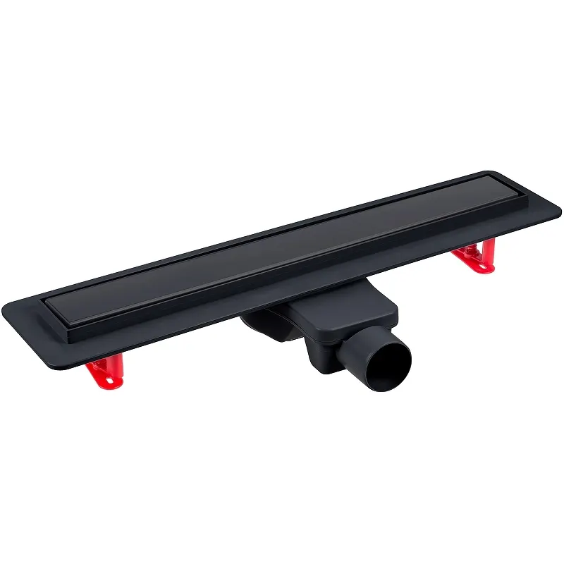 Душевой лоток Berges Optim Line Black 800 095508.Характеристики: Цвет решетки: черный матовый. Материал решетки: нержавеющая сталь AISI 304, толщиной 1 мм. Материал желоба: пластик. Габариты (ШхД): 853х122 мм. Высота лотка (с сифоном): 75 мм. Габариты решетки (ШхД): 800х48 мм. Минимальная монтажная высота: 59 мм. Вид решетки: двухсторонняя (с щелью для воды / под плитку). Вид затвора: комбинированный затвор защитит от запаха из канализации. Выпуск: горизонтальный. Диаметр слива: 50 мм. Диаметр подключения: 50 мм. Сифон с боковым выпуском D50, S-образной самопромывной конструкцией, высокой пропускной способностью 48 л/мин. Предельно допустимая нагрузка: 300 кг. Сифон поворотный на 360 градусов. Устойчив к внешним химическим воздействиям, рабочая температура от -30 до +75 градусов. Регулируемые по высоте ножки. Простой уход за счет наличия сетки для волос и легкого доступа к сифону. Удобный и легкий монтаж. Размещение: вровень с полом. Монтаж: около стены (в пол). В комплекте поставки: Корпус желоба. Двухсторонняя решетка. Комбинированный затвор. S-образный самопромывной сифон. Самоклеящаяся гидроизоляционная мембрана. Сетка для волос. Ключ для решетки. Регулируемые ножки.