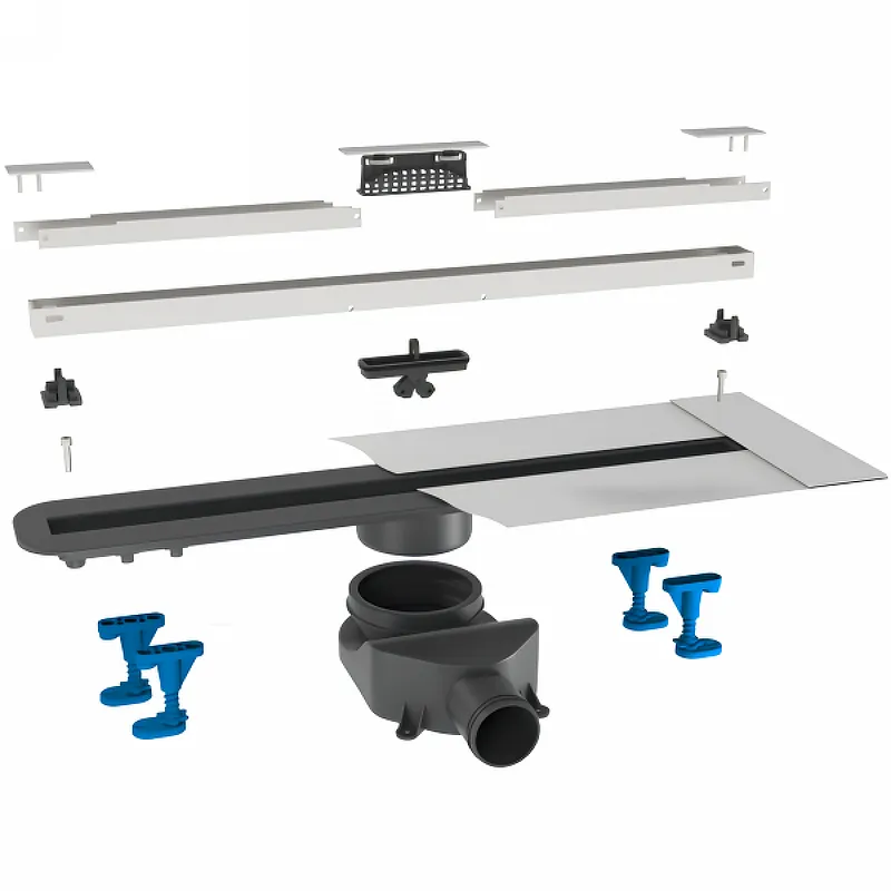 Душевой лоток Bettoserb Slim 65 13100033.Характеристики: Цвет решетки: хром матовый. Материал решетки: нержавеющая сталь AISI 304. Материал корпуса: ABS-пластик. Материал сифона и переходника: PP (полипропилен). Материал рамки: алюминий. Габариты (ШхВхД): 698х42х101 мм. Высота гидрозатвора: 25 мм. Регулировка дизайн элемента по высоте: 0-12 мм. Минимальная монтажная высота: 68 мм. Декоративные заглушки с логотипом. Вид решетки: со щелью для воды. Вид затвора: комбинированный. Направление выпуска: боковое (горизонтальное). Сифон: S-образный, вращающийся на 360 градусов. Диаметр выхода: 50 мм. Пропускная способность: 45 л/мин. Нагрузка на решетку (в соответствии с EN 1253) – выдерживает до 300 кг давления (класс K3). Допустимая толщина керамической плитки - 5-20 мм. Регулируемые по высоте опоры. Размещение: вровень с полом. Монтаж: в пол. В комплекте поставки: Душевой лоток – 1 шт. Корпус – 1 шт. S-образный сифон – 1 шт. Опоры для регулировки высоты – 4 шт. Переходник с уплотнительной резинкой – 1 шт. Грязеулавливающая сетка – 1 шт. Сухой затвор. Декоративные элементы. Держатели дизайн-вставки. Гидроизоляционная лента – 1 компл. Устройство для снятия решетки – 1 шт. Набор крепежей – 1 компл. Инструкция по монтажу – 1 шт. Гарантийный талон – 1 шт. Упаковка – 1 шт.