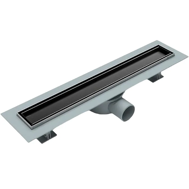 Душевой лоток Esbano Eco 50 E-TILE-50MB ESTRECOTILE50MB.Характеристики: Цвет решетки: черный матовый. Материал: ABS-пластик, нержавеющая сталь 304. Решётка: нержавеющая сталь 1,5 мм. Вид решетки: щель / под плитку. Длина решетки: 500 мм. Вид затвора: комбинированный (сухой+гидро). Направление выпуска: горизонтальное (регулировка на 360 градусов). Максимальная пропускная способность: 30 л/мин. Диаметр подключения: 40 мм. Диаметр слива: 40 мм. Размеры (ДхВхШ): 552х98х125 мм. Регулируемые монтажные ножки. Высота установки трапа: 82 - 98 мм. Размещение: вровень с полом. Монтаж: около стены (в пол). В комплекте поставки: Желоб-водосток, ABS. Рамка, нержавеюшая сталь 304. Решетка, нержавеющая сталь 304. Клапан комбинированный, неодимовый магнит. Ткань, водонепроницаемая самоклеющаяся. Сифон с гидрозатвором из РР. Адаптер, PP 40/50. Регулируемые ножки, ABS. Ключ шестигранный. Крючок, пластиковый. Инструкция.