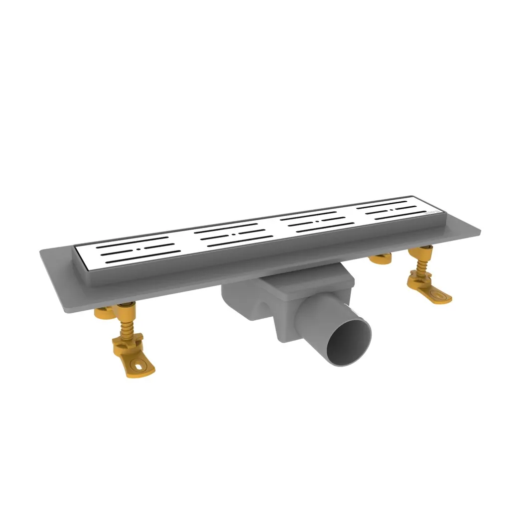 Душевой канал с решеткой из нерж. стали, с сухим клапаном, прямоугольный, с площадкой под керамическую плитку, 63*600, 3600 горизонтальный выход Ø50