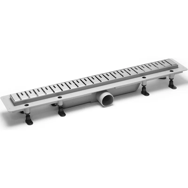 Душевой лоток PlastBrno Design 2 65 SZA2650.Характеристики: Цвет решетки: хром. Материал: нержавеющая сталь, полипропилен. Ширина внешней части: 644 мм. Длина внешней части: 58 мм. Пропускная способность: 60 л/мин. Максимальная нагрузка: 300 кг. Диаметр подключения: 5 см. Диаметр слива: 5 см. Регулировка: по высоте от 65 до 85 мм. Вид затвора: комбинированный (мокрый, сухой). Монтаж: в пол. Размещение: вровень с полом. Направление выпуска: горизонтальное. В комплекте поставки: Душевой лоток. Решетка. Регулируемые ножки. Крючок для извлечения решетки. Гидроизоляционная самоклеющаяся лента. Инструкция по монтажу.