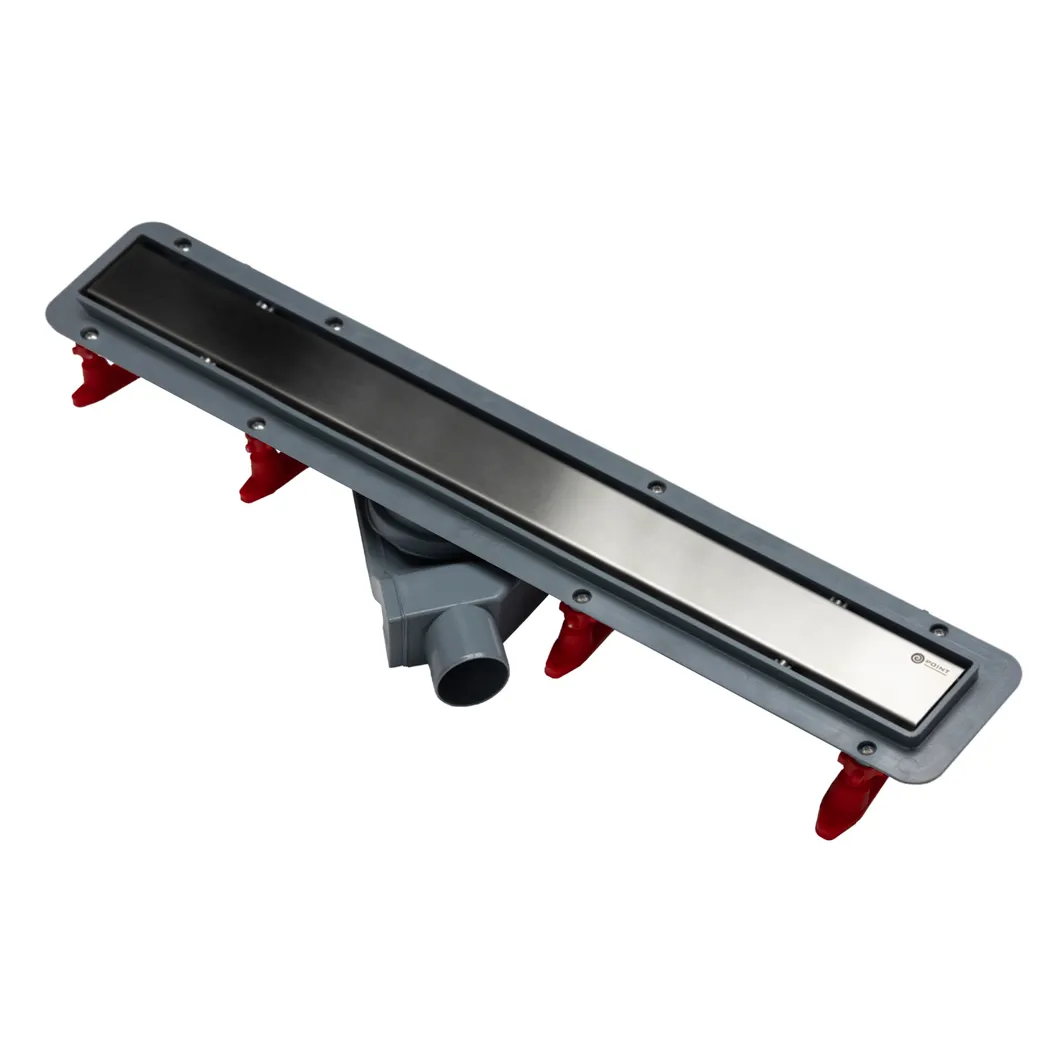 Душевой лоток POINT Гермес состоит из основания из ABS-пластика, стальной реверсивной решётки для лотка, рамки для внешней решетки, улавливателя для волос, соединительного переходника с резиновым уплотнителем и S- образного сифона, изготовленного из полипропилена. Выходное отверстие - 50 мм, минимальная высота установки - 52 мм, пропускная способность - 48 л/мин. Сифон самоочищающийся с высотой гидроизоляции 25 мм, вращающийся на 360 градусов, с регулируемым по высоте редуктором для линейного слива, ножками для регулировки высоты и наклона, с набором для установки сухого затвора и грязеуловителем. Реверсивная решетка из нержавеющей стали AISI 304 класса K3 с возможностью укладки в нее керамической плитки, мрамора или стекла.