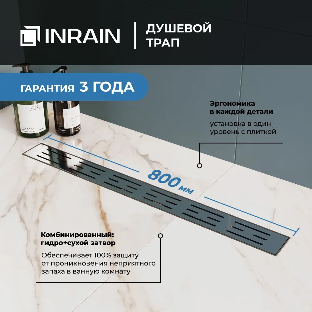 Душевой лоток INRAIN HRL-10-80 — это идеальное сантехническое решение для отведения воды из душевых зон, облицованных керамической плиткой или мозаикой. Данный душевой лоток обладает высокой надёжностью и долговечностью благодаря материалам высокого качества. С его помощью вы сможете обеспечить эффективный сток воды, сохраняя при этом эстетику вашего интерьера.