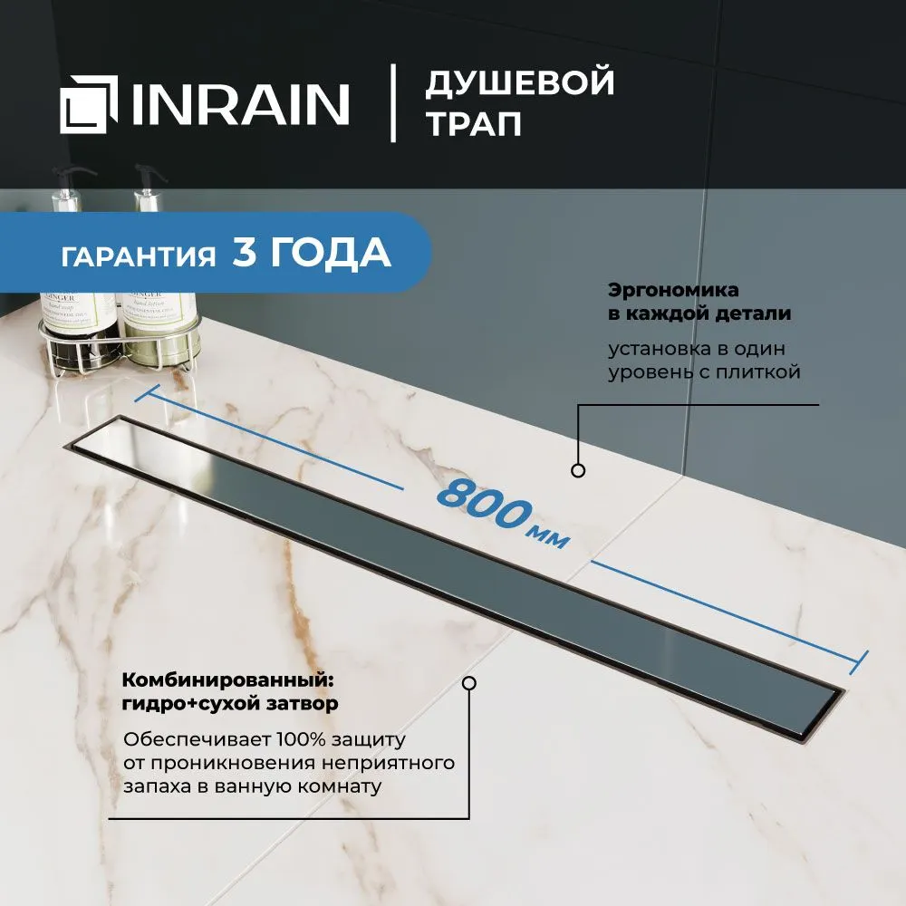 Душевой лоток прямой INRAIN SRL-21-80 800 Ø 50 мм хром арт-SL212180-CH