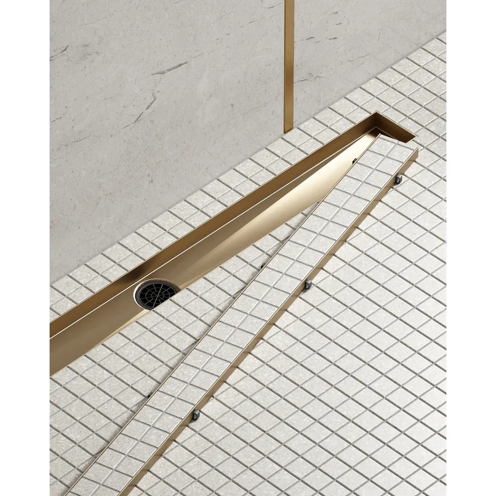 Душевой лоток TIMO Drain System 900 с двусторонней панелью "plate" под плитку, Золото матовое арт-DS230209/17